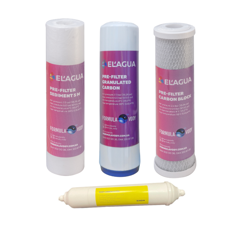 Из моделей фильтров нашего производства набор картриджей предварительной очистки подойдет для: EL'AGUA50, EL'AGUA 75, EL'AGUA 5, EL'AGUA 6, EL'AGUA 7.