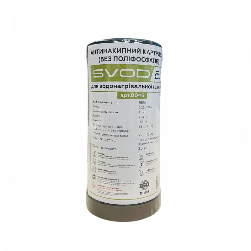 Антинакипний картридж “SVOD-AS” BB10 — змінний фільтруючий елемент, спеціально розроблений для захисту водонагрівального обладнання, побутових і промислових теплообмінників, бойлерів та котлів від утворення накипу, корозії, важких металів і шкідливих домішок у воді.